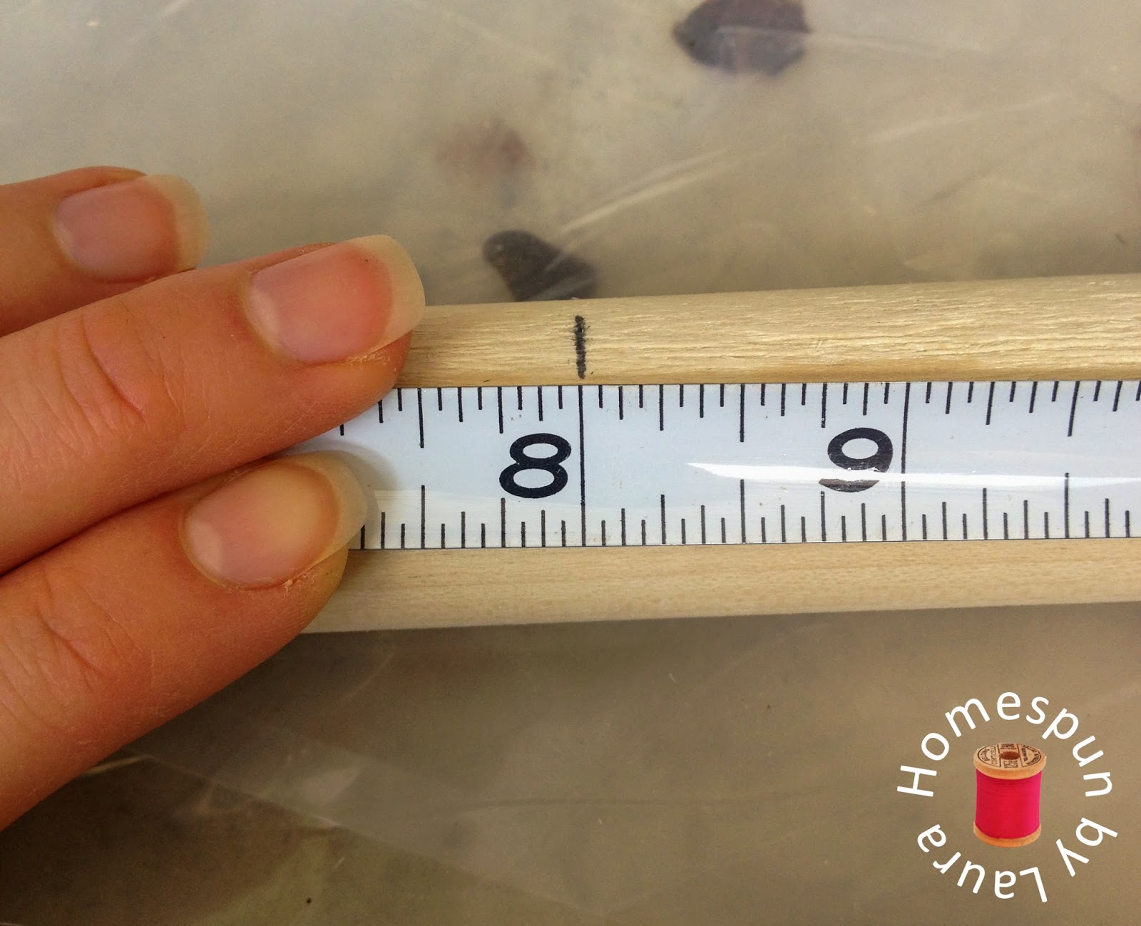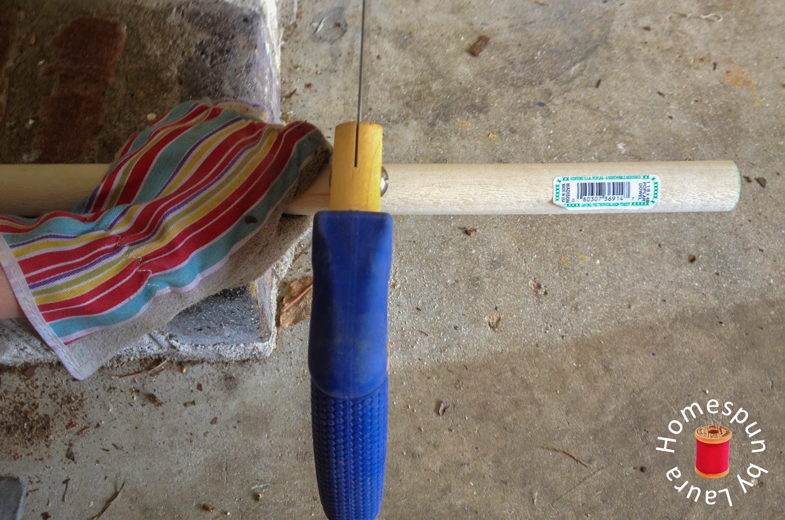 The next step was to cut the dowels down to size. The two windows on the back wall of our den are wider than the ones on the front, so I only had to cut down the rods for the front two windows.