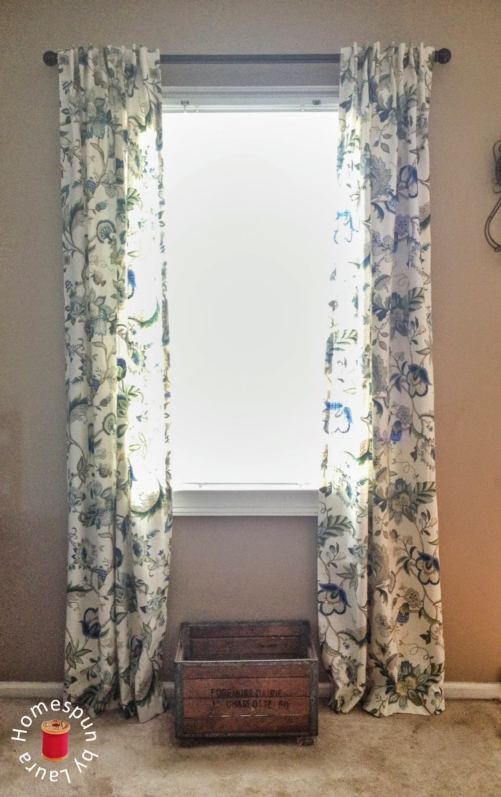 I’m having trouble getting a decent picture of the finished curtains; the room is so dark and the light coming through the windows is so bright, so the iPhone picture doesn’t really do it justice.