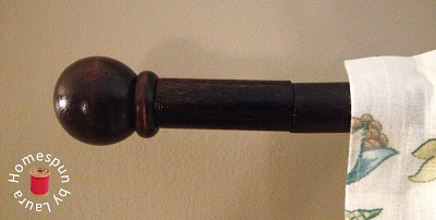 All I had to do was stain them, drill a hole in each end, and add an extra dowel screw. To add them to the existing rods, I unscrewed one finial from the rod, screwed the finial to one end of the extension piece, then twisted the combined finial and extension piece back onto the end of the rod. This is also how you would combine two dowels to create a rod for a wide window.