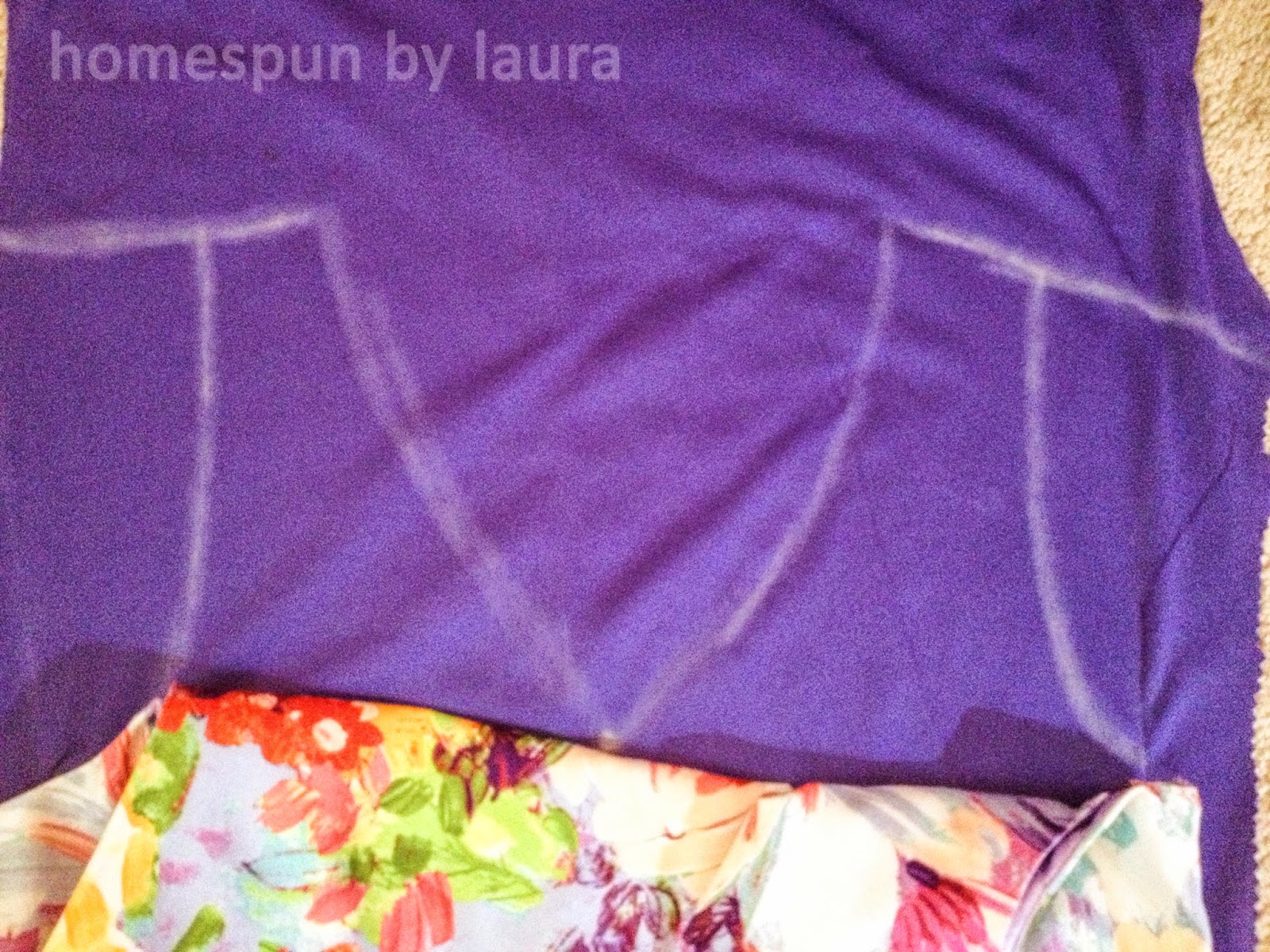 Since I wanted a v-neck and, I used another dress with a v-neck to trace out the approximate shape for the top of my dress and sketched out an approximate v-back using the front as a guide.