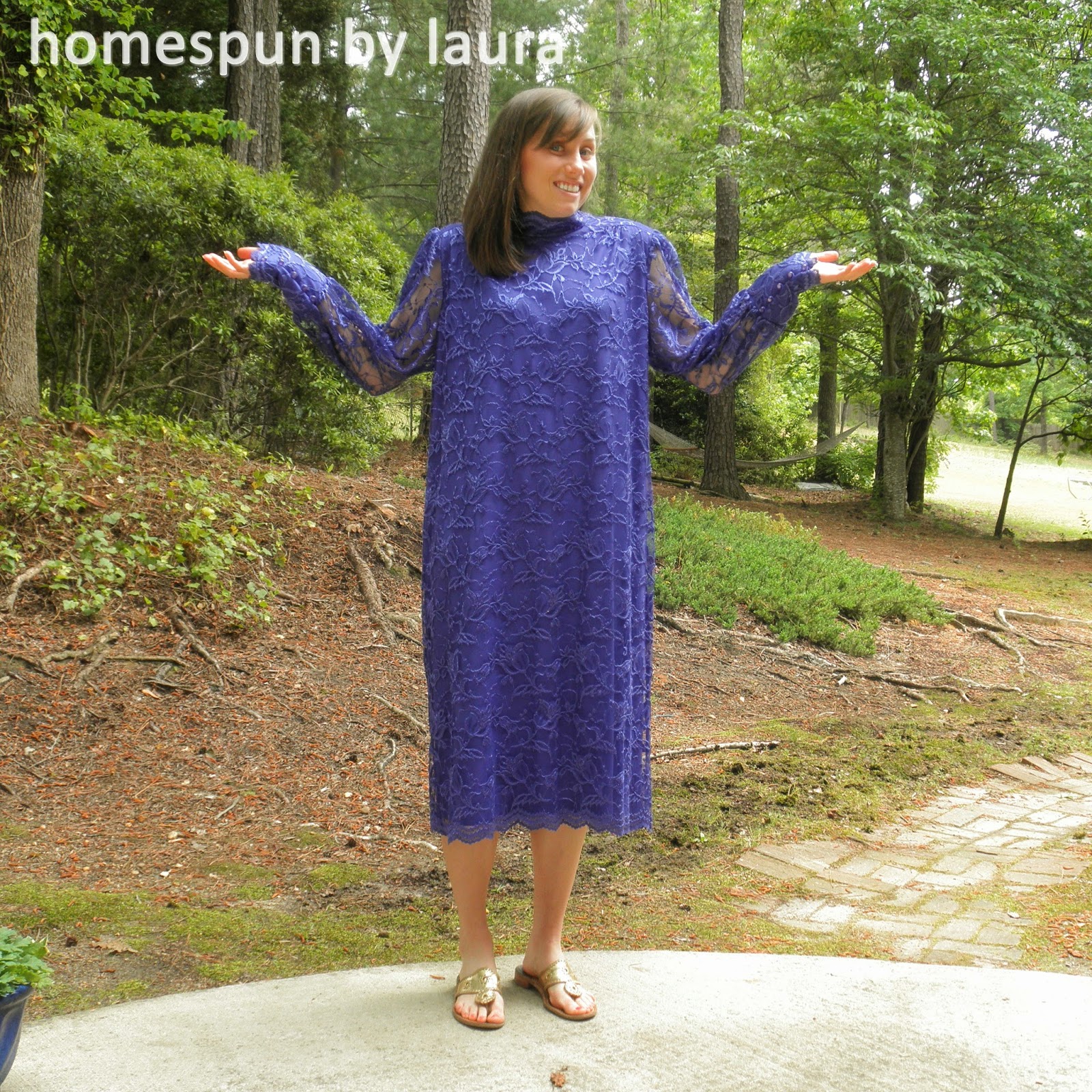 Hello, long-lost little blog! I found this dress made of beautiful blue-purple lace (or, blurple) for $2.50 at an antique store last fall and it has since hung in the closet waiting to see the light of day. I’m not actually sure if it qualifies as a muumuu, but it’s close, so I’m calling it that for now. I thought I should hurry up and give it some attention while lace is still ‘in’, so decided to fix it up to wear to a friend’s wedding last week.