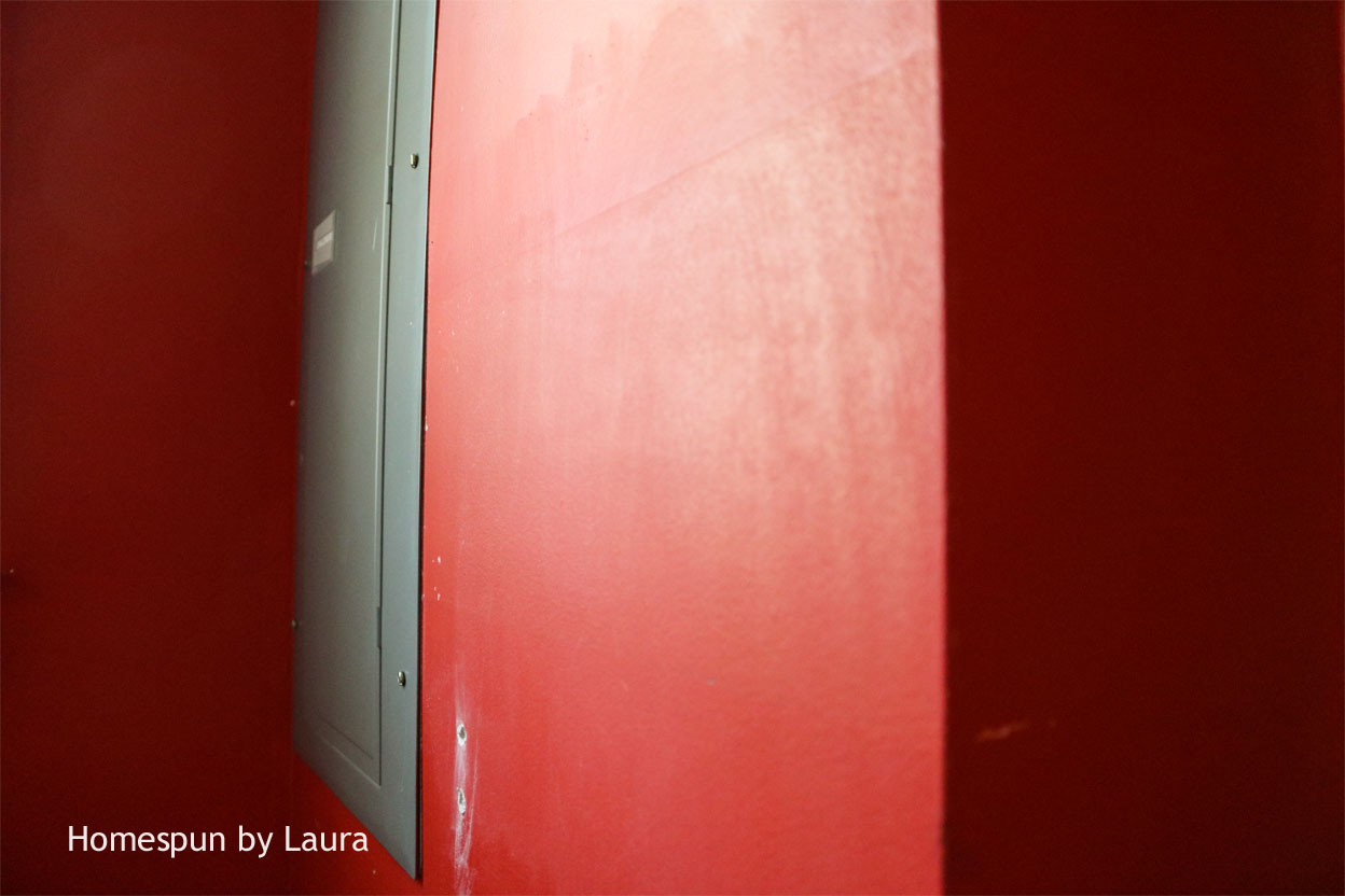 Though I have painted every room in our house except the kitchen and bathrooms – and even the staircase – all by myself, the laundry room was one that I had no interest in tackling (which is why the paint sat in our garage for over a year before it wound up on the wall). For the first time ever, I hired a painter to handle this tiny room that contains 8 corners, 4 doors, 3 cabinets, a window, a washing machine, and a dryer. That adds up to way too many edges to cut in and two too-big items for me to move around on my own.